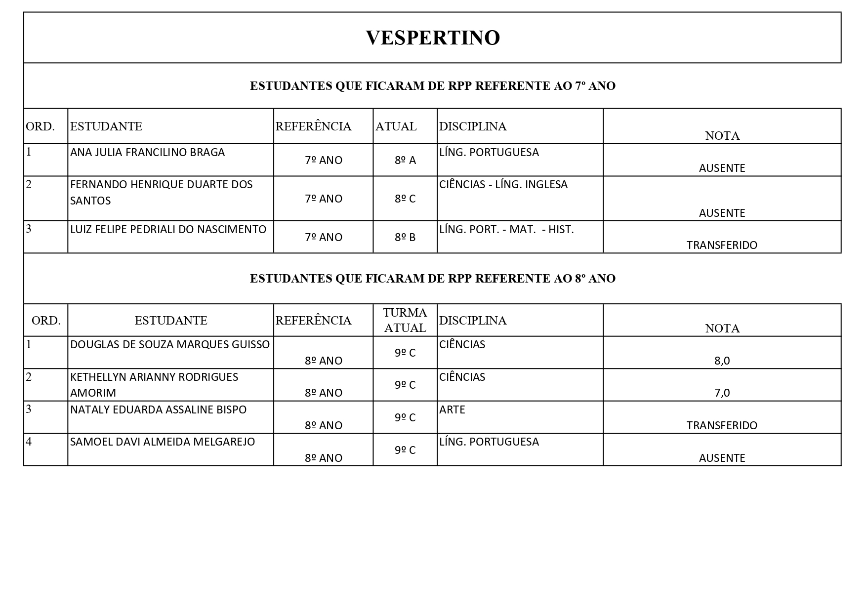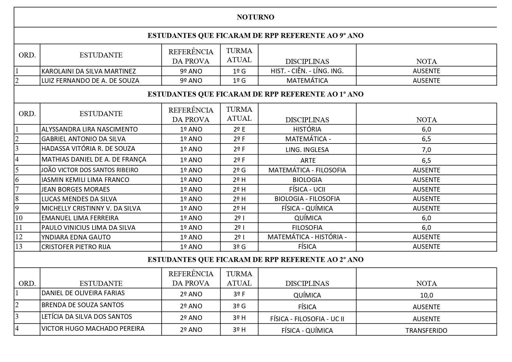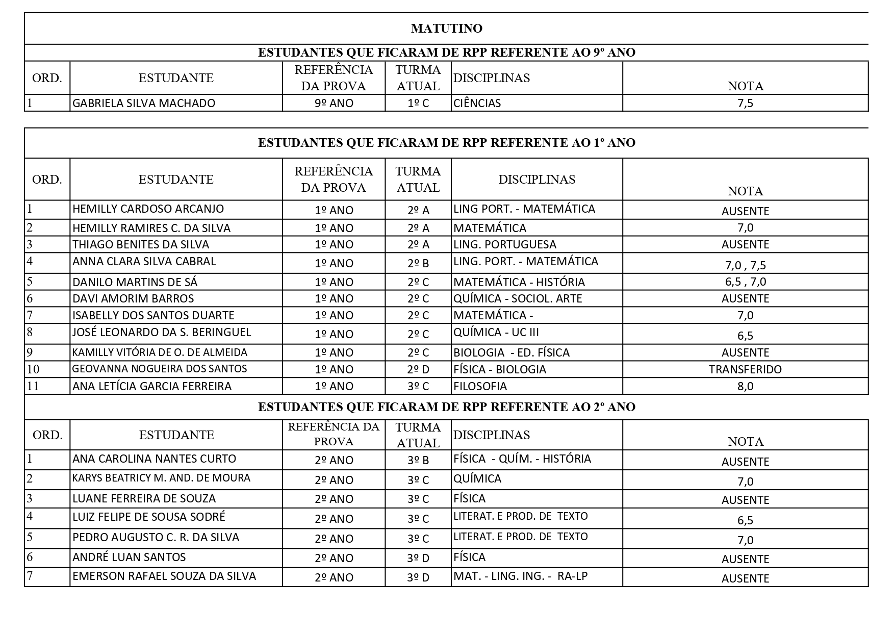 RESULTADO DAS PROVAS DA RPP - Regime de Progressão Parcial